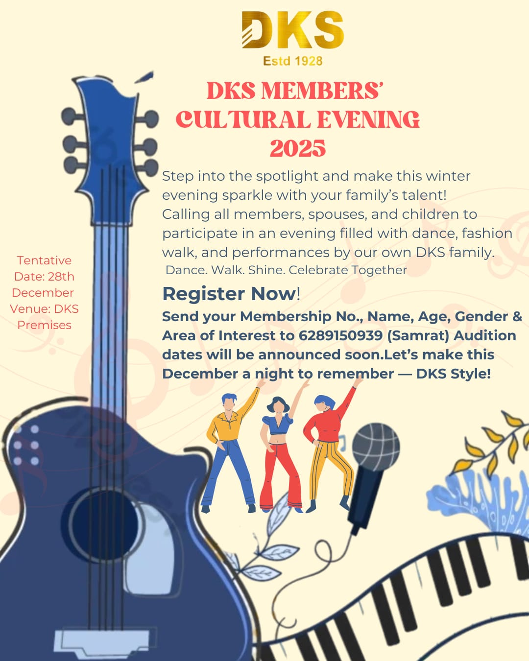 | 1 | DKS Members Cultural Evening 2025 | Showcase Your Talent at the DKS Cultural Evening ! It’s your time to own the stage! Show off your moves, your style, your charm - whether it’s dance or fashion walk, we want you and your family to shine. Lights. Music. Applause. The spotlight’s waiting for you ! | 15/10/2025 | View |